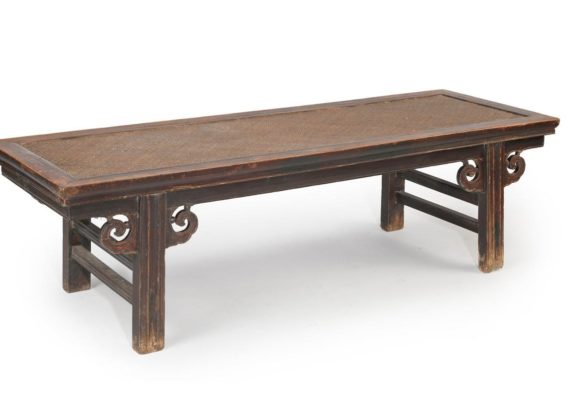 A Chinese Wooden Bench With Rattan Seat