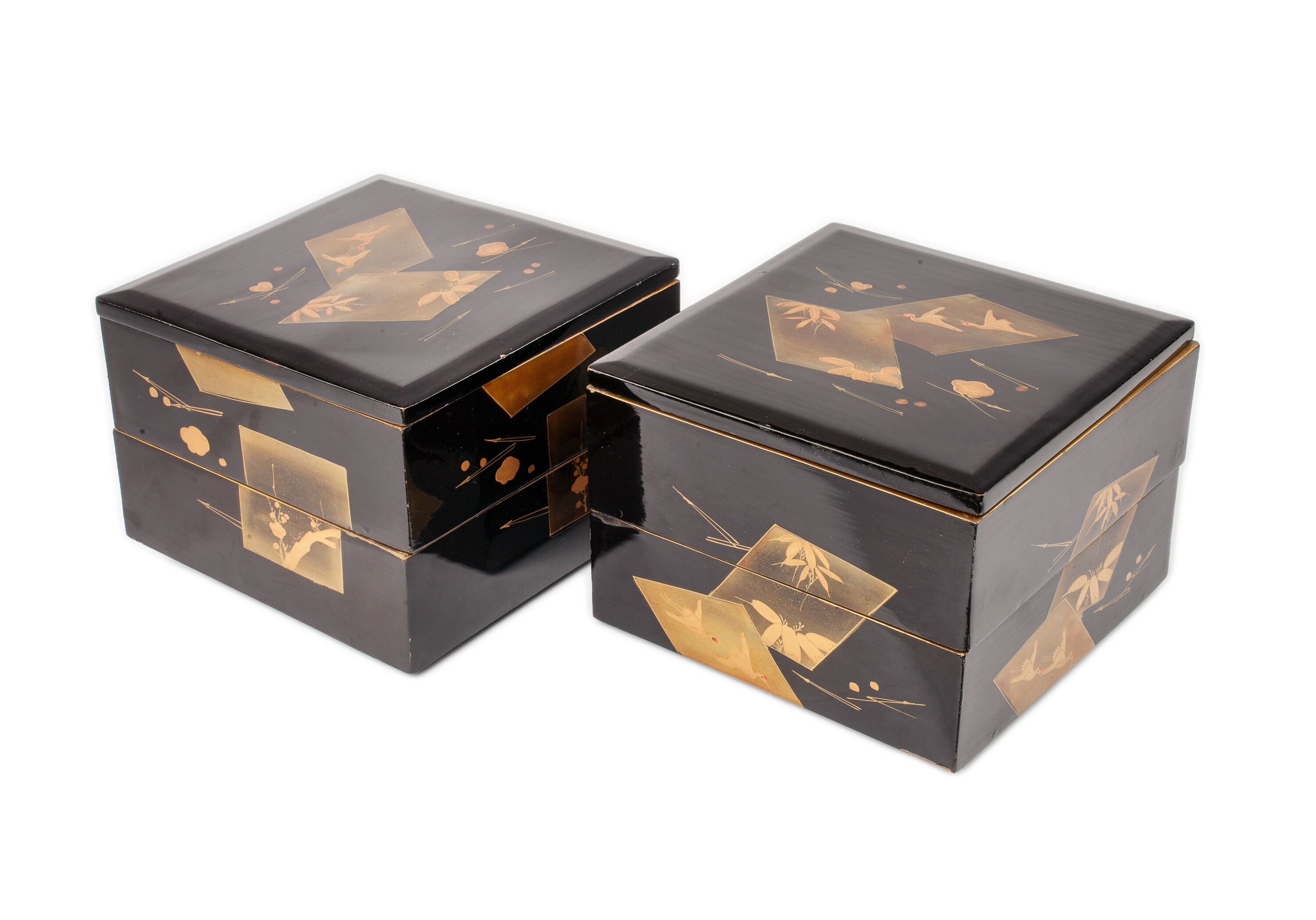 A Pair of Japanese Lacquer and Gilt Jubako, or Tiered Boxes, of Small Size
